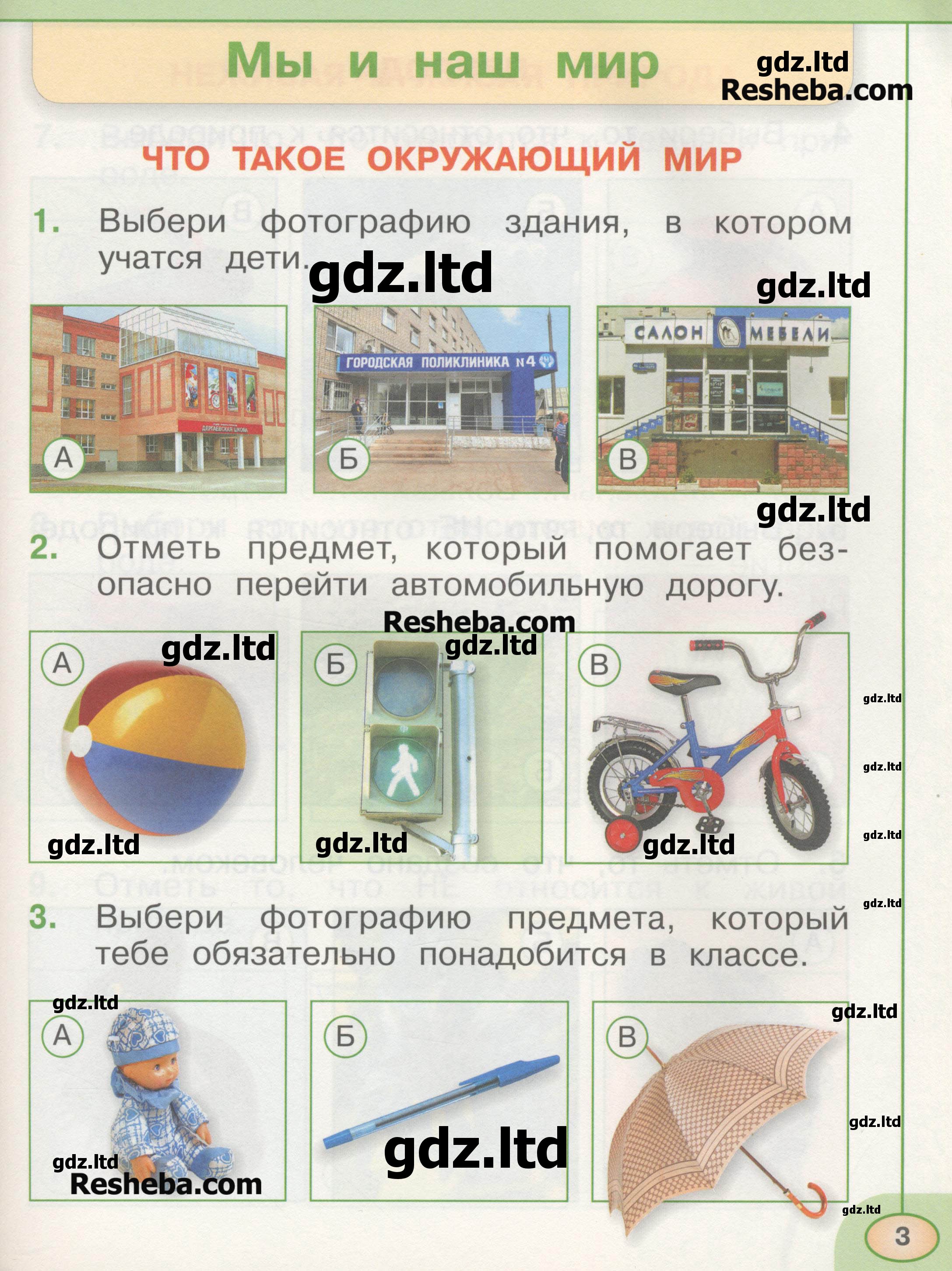Почти в каждом вопросе прикреплены веселые картинки, с отметками «А, Б, В», чтобы школьнику было не скучно учится. Решая познавательные задания, внимательно прочитайте их содержание. Если есть рисунки, пусть школьник сначала рассмотрит их, а затем постарается найти ответ, используя свои знания.
