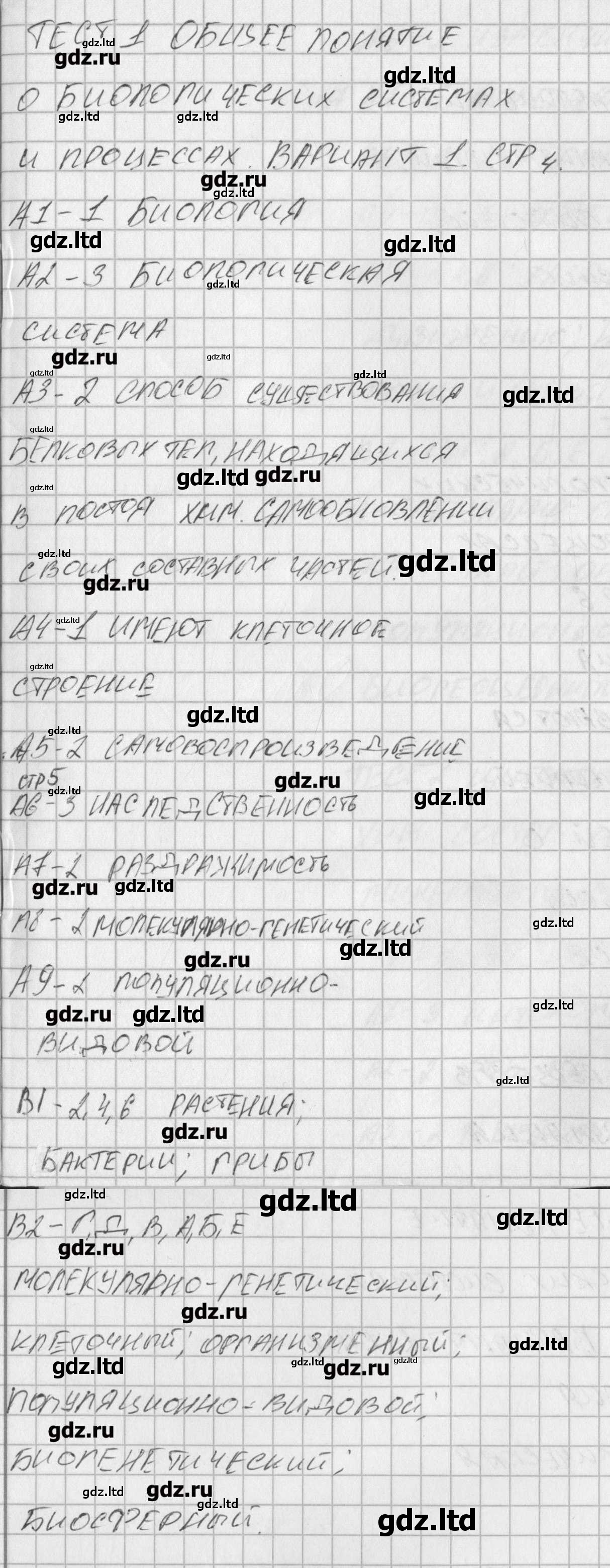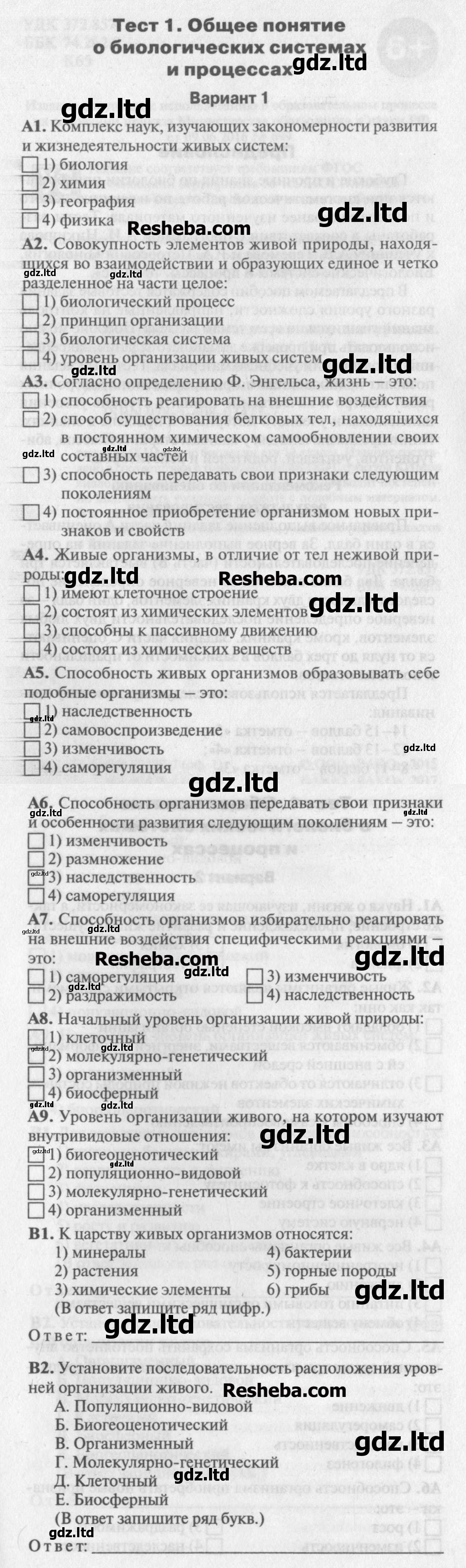 ГДЗ Биология 10 класс Богданов - Контрольно-измерительные материалы «ВАКО»