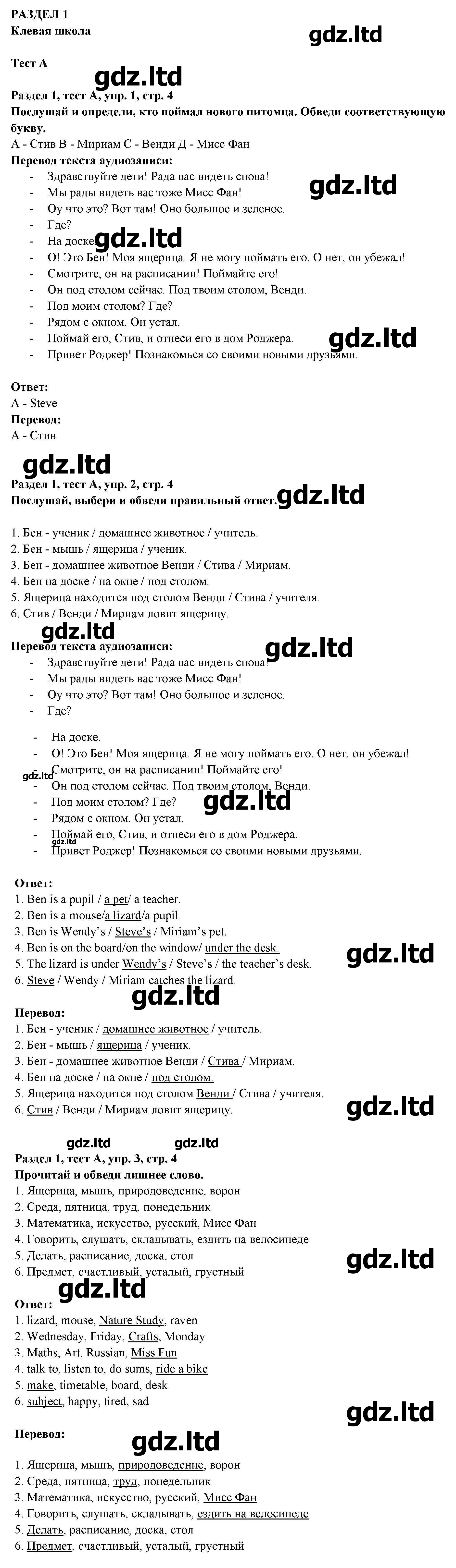 На семидесяти восьми страницах содержатся тестовые работы, которые распределены по десяти изучаемым в этом году разделам. Каждая работа имеет по два варианта, так что тщательная проработка каждого из них поможет полноценно усвоить текущую информацию. ГДЗ по английскому языку 3 класс Славщик содержит проверенные и подробные ответы по всем номерам, что облегчит подготовительные мероприятия.