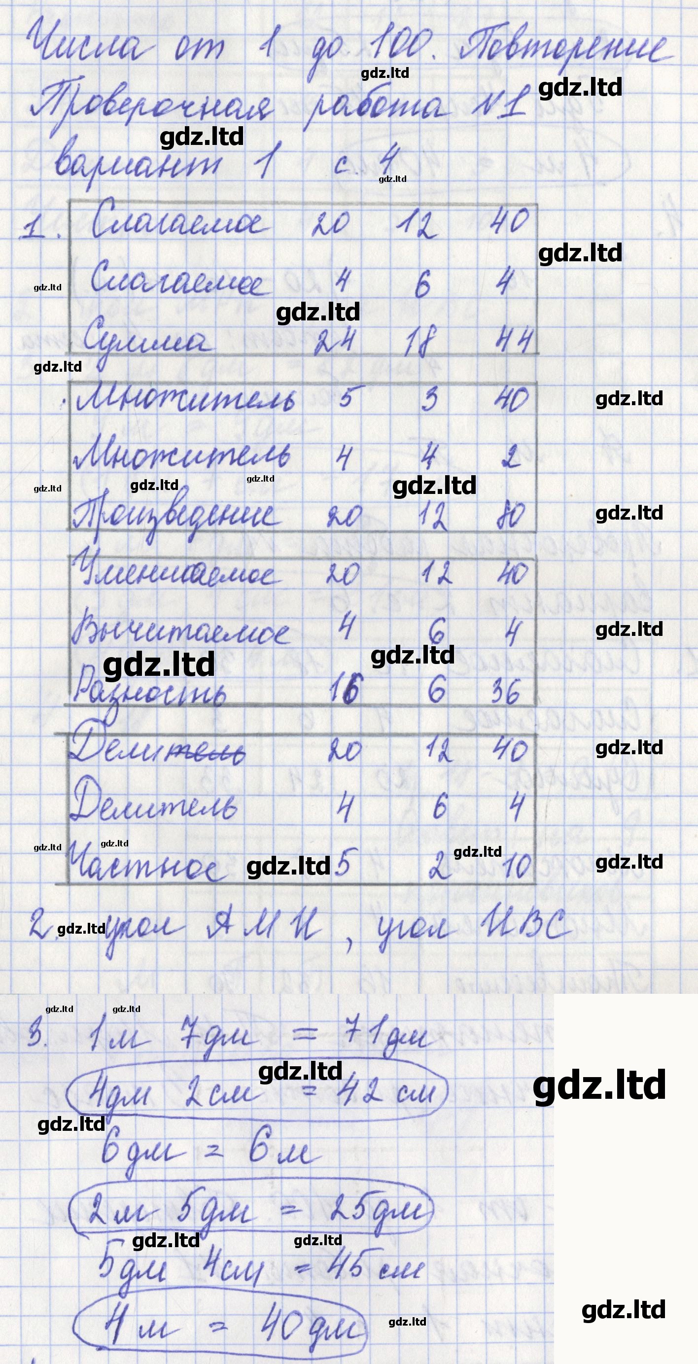 На семидесяти девяти страницах этого пособия представлены пятнадцать проверочных работ, среди них есть и итоговая за год. Все задания в ГДЗ по математике 3 класс разделены на четыре варианта. Каждая работа приурочена к какому-либо разделу.