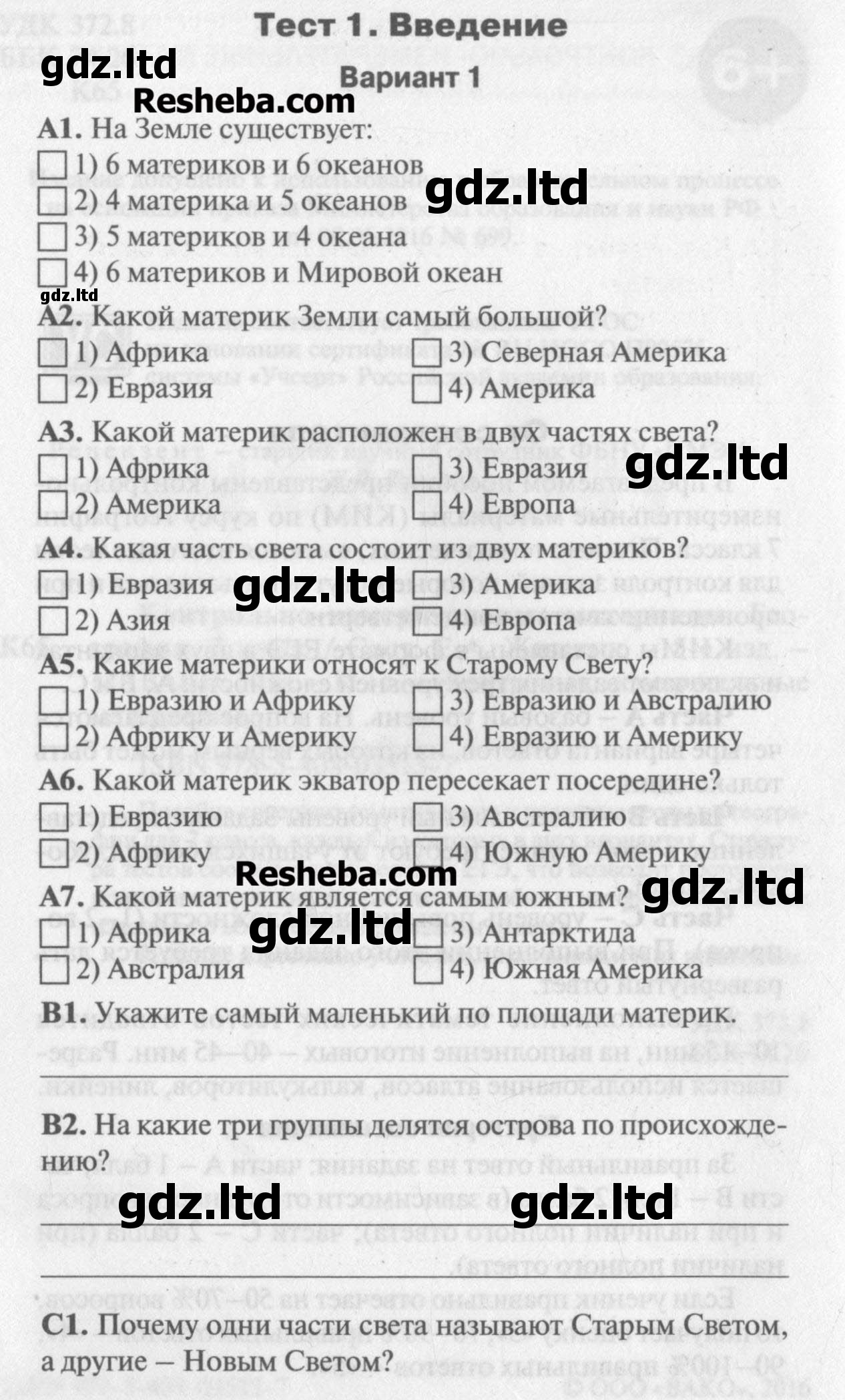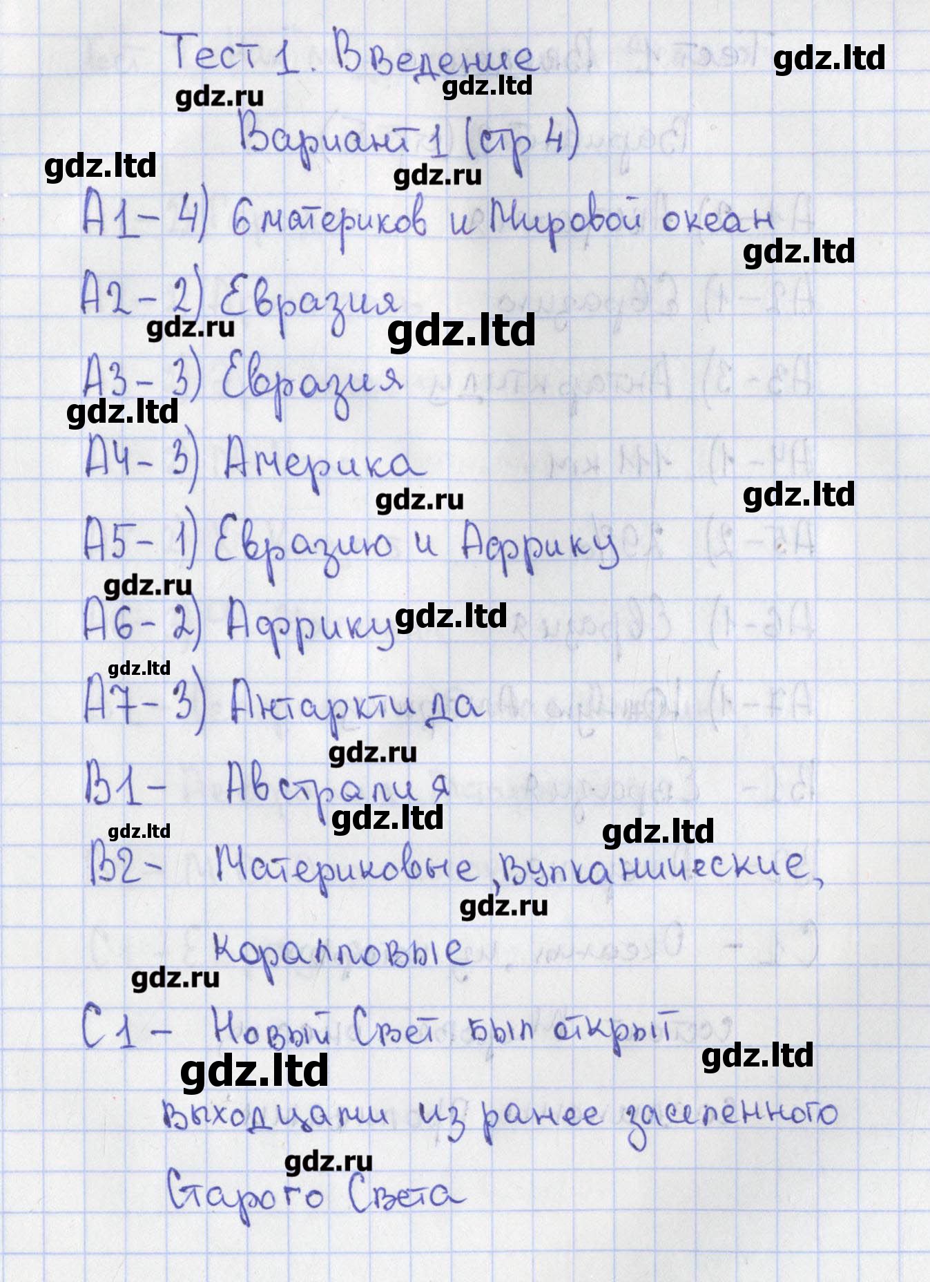 ГДЗ География 7 класс Жижина - Контрольно-измерительные материалы «ВАКО»