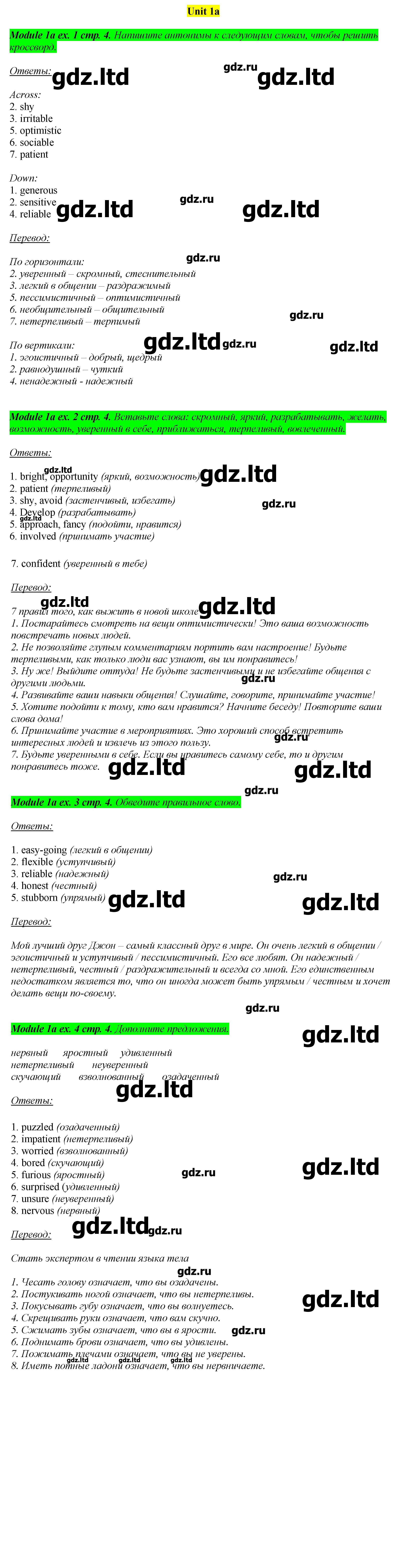 Восемь модулей несут в себе определенную тематическую нагрузку от общения и времяпрепровождения до глобальных проблем. Все упражнения в ГДЗ по английскому языку 8 класс призваны дать подросткам всестороннее представление о затронутых темах.